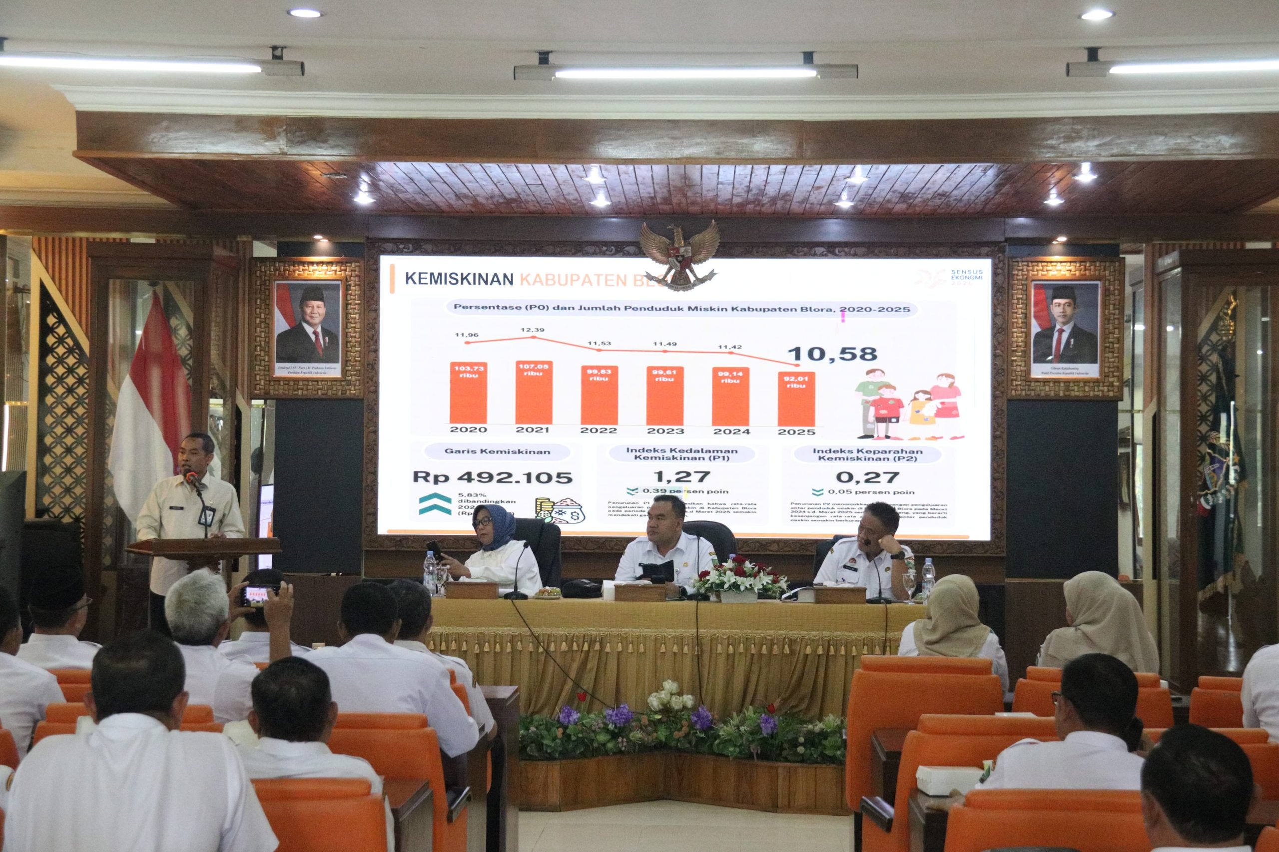 Menurut data BPS, angka kemiskinan di Blora tahun 2025 berada di level 10,58 persen, atau turun 0,8 poin dari tahun 2024 yang mencapai 11,42 persen. Jumlah penduduk miskin pun berkurang dari 99,14 ribu jiwa pada 2024 menjadi 92,01 ribu jiwa pada 2025.