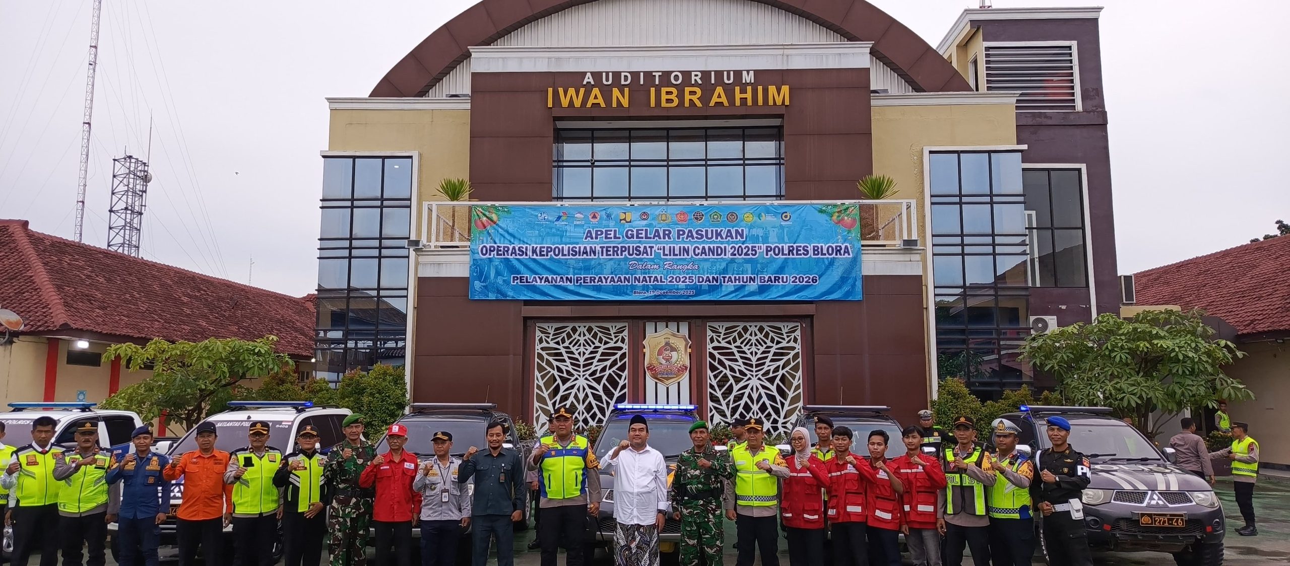 Klikjateng, Blora — Pemerintah Kabupaten Blora bersama Polres Blora menggelar Apel Gelar Pasukan Operasi Kepolisian Terpusat Lilin Candi 2025 di halaman Mapolres Blora, Jumat (20/12/2025). Apel ini dilaksanakan sebagai bentuk pengecekan akhir kesiapan personel dan sarana prasarana pengamanan perayaan Natal 2025 dan Tahun Baru 2026.