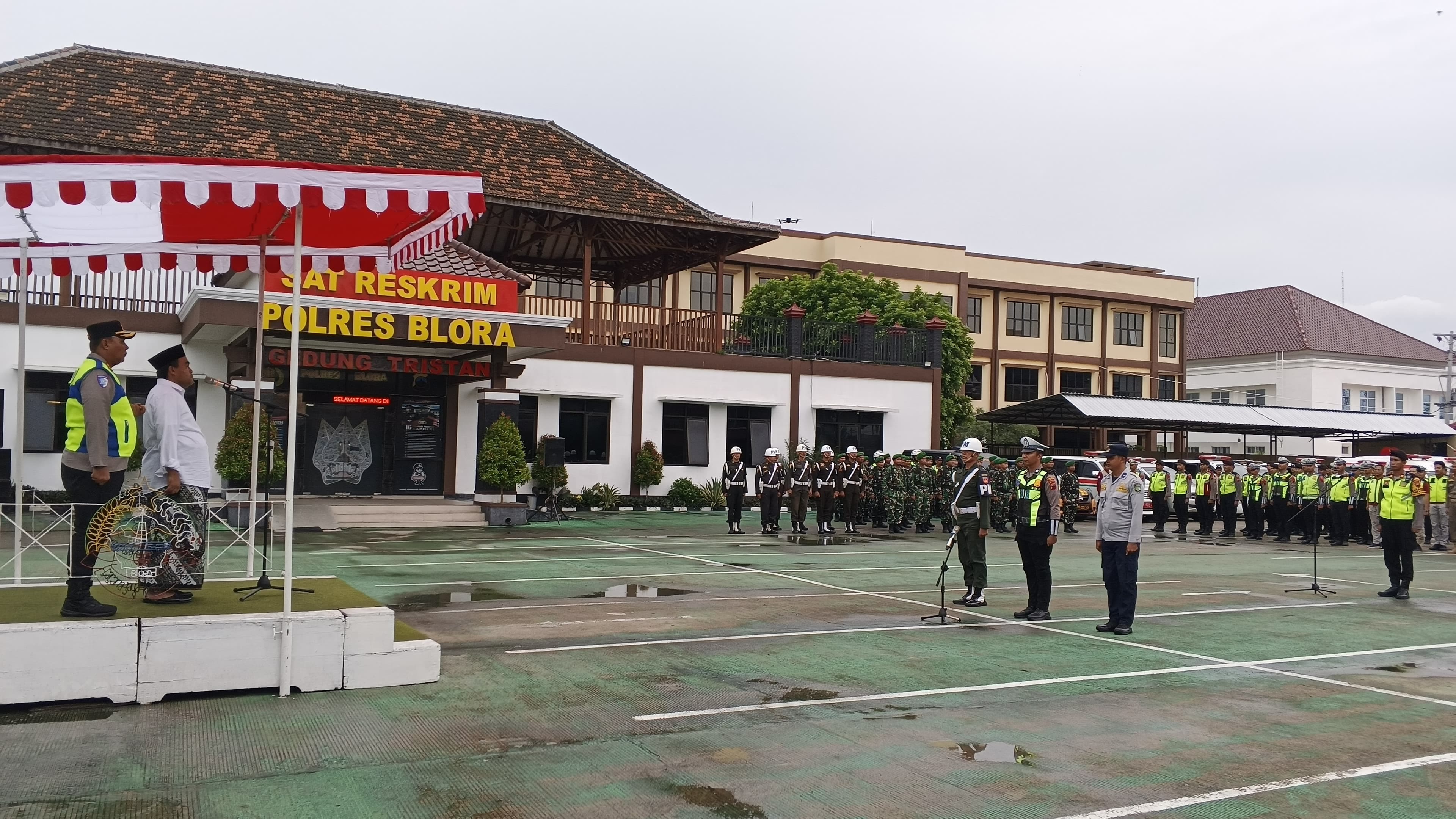 Apel tersebut dihadiri unsur Forkopimda Kabupaten Blora, TNI-Polri, tokoh masyarakat, tokoh agama, tokoh pemuda, organisasi kemasyarakatan, serta instansi terkait. Bertindak sebagai inspektur apel, Bupati Blora Arief Rohman menyampaikan amanat Kepala Kepolisian Negara Republik Indonesia, Jenderal Polisi Listyo Sigit Prabowo, yang menekankan pentingnya kesiapsiagaan dan sinergitas lintas sektor dalam pengamanan Nataru.