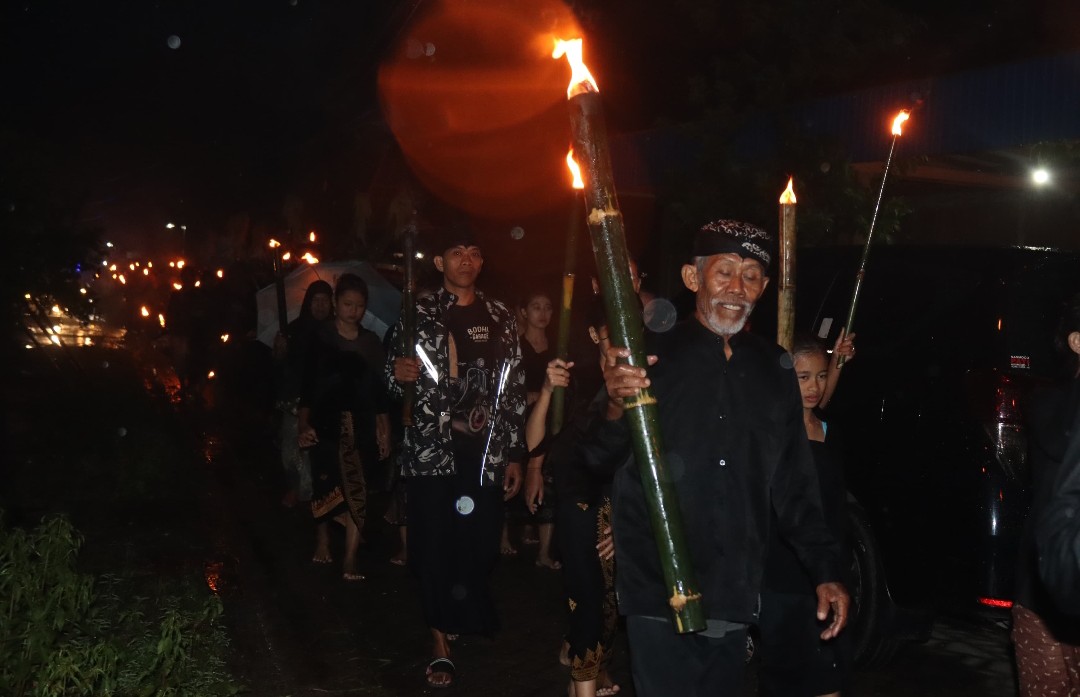 Dalam pangkur yang ia bacakan sebelum pawai obor, Gunretno menyoroti eksploitasi alam yang semakin masif demi kepentingan segelintir pihak.