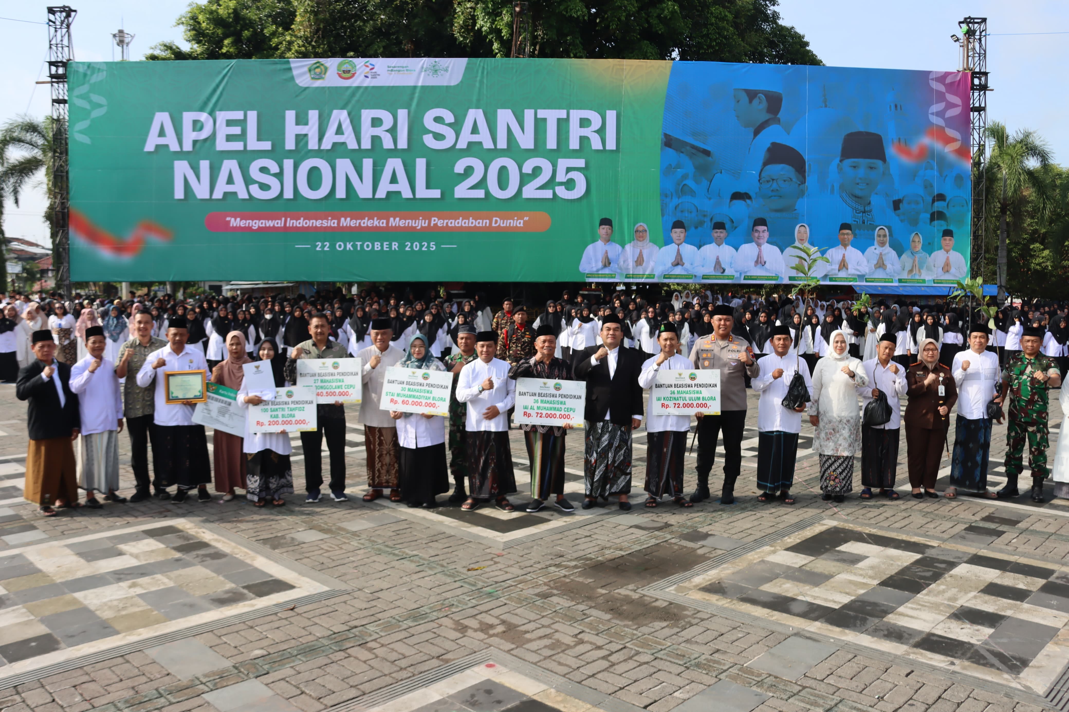 Hal tersebut disampaikan Bupati Arief usai memimpin Apel Hari Santri Tahun 2025 di Alun-Alun Kabupaten Blora, Selasa (22/10/2025). Acara berlangsung khidmat dengan diikuti jajaran Forkopimda Blora, seluruh kepala OPD, camat, ASN Pemkab Blora, ASN Kemenag Blora, organisasi masyarakat keagamaan, serta ribuan santriwan dan santriwati dari berbagai pondok pesantren di Blora.