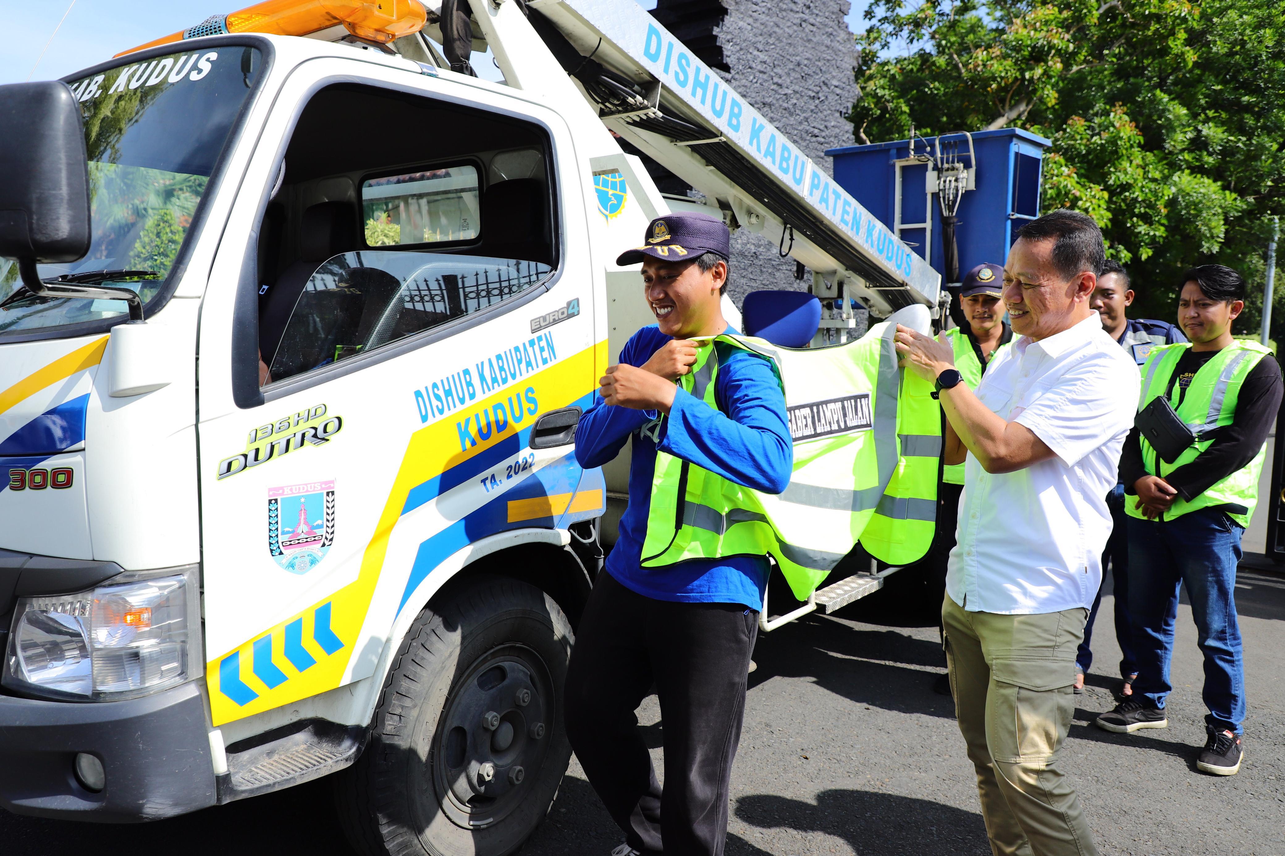 Klikjateng, Kudus – Bupati Kudus Sam’ani Intakoris menunjukkan komitmennya dalam menangani permasalahan Lampu Penerangan Jalan Umum (LPJU). Pada Minggu (9/3/2025), ia secara resmi menyerahkan rompi dan mengecek peralatan Tim Saber Lampu Jalan, tim khusus yang dibentuk untuk merespons cepat aduan masyarakat terkait LPJU rusak.