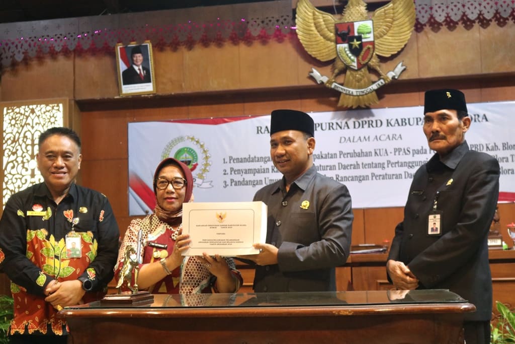Usai penyampaian laporan, dilakukan penandatanganan Nota Kesepakatan KUA-PPAS 2025 serta penyerahan buku Raperda Pertanggungjawaban APBD 2024 oleh Wakil Bupati Hj. Sri Setyorini kepada Ketua DPRD Blora, disaksikan oleh Sekda Blora Komang Gede Irawadi, S.E., M.Si.