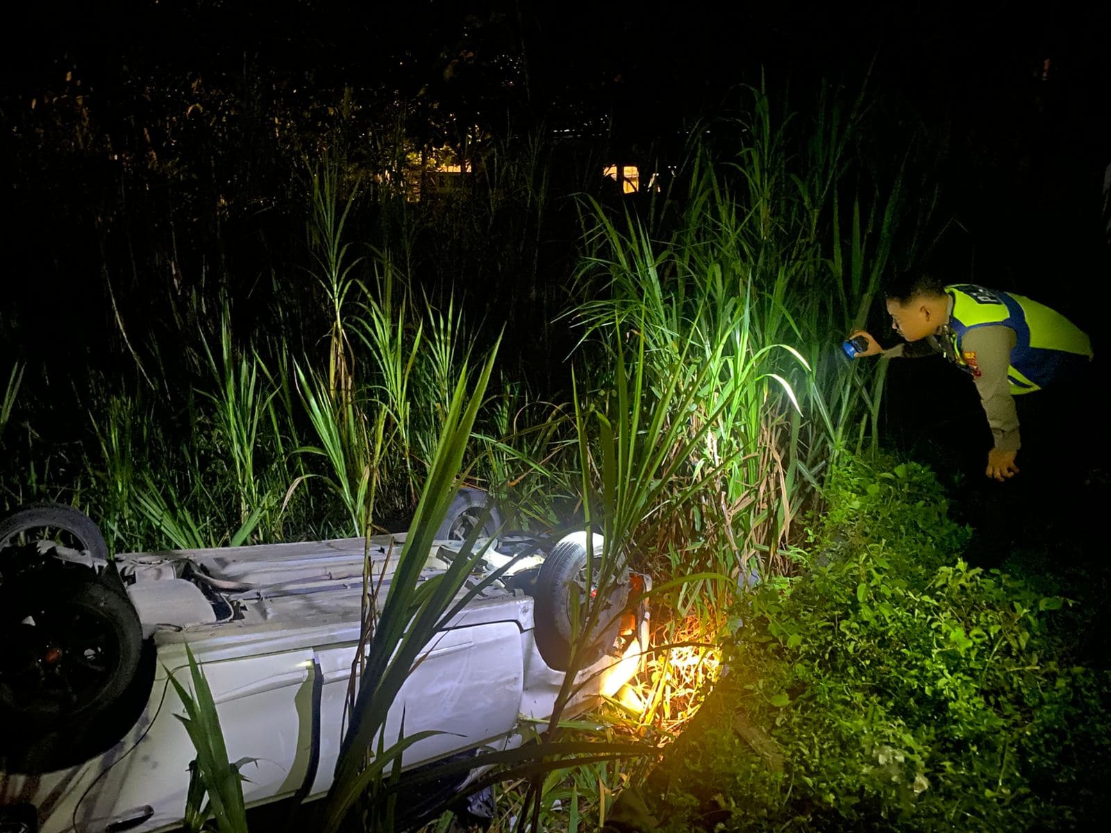 ‎Peristiwa tersebut melibatkan dua kendaraan roda empat, yakni mobil Datsun Go bernomor polisi AE 1745 NC dan mobil Isuzu Panther.