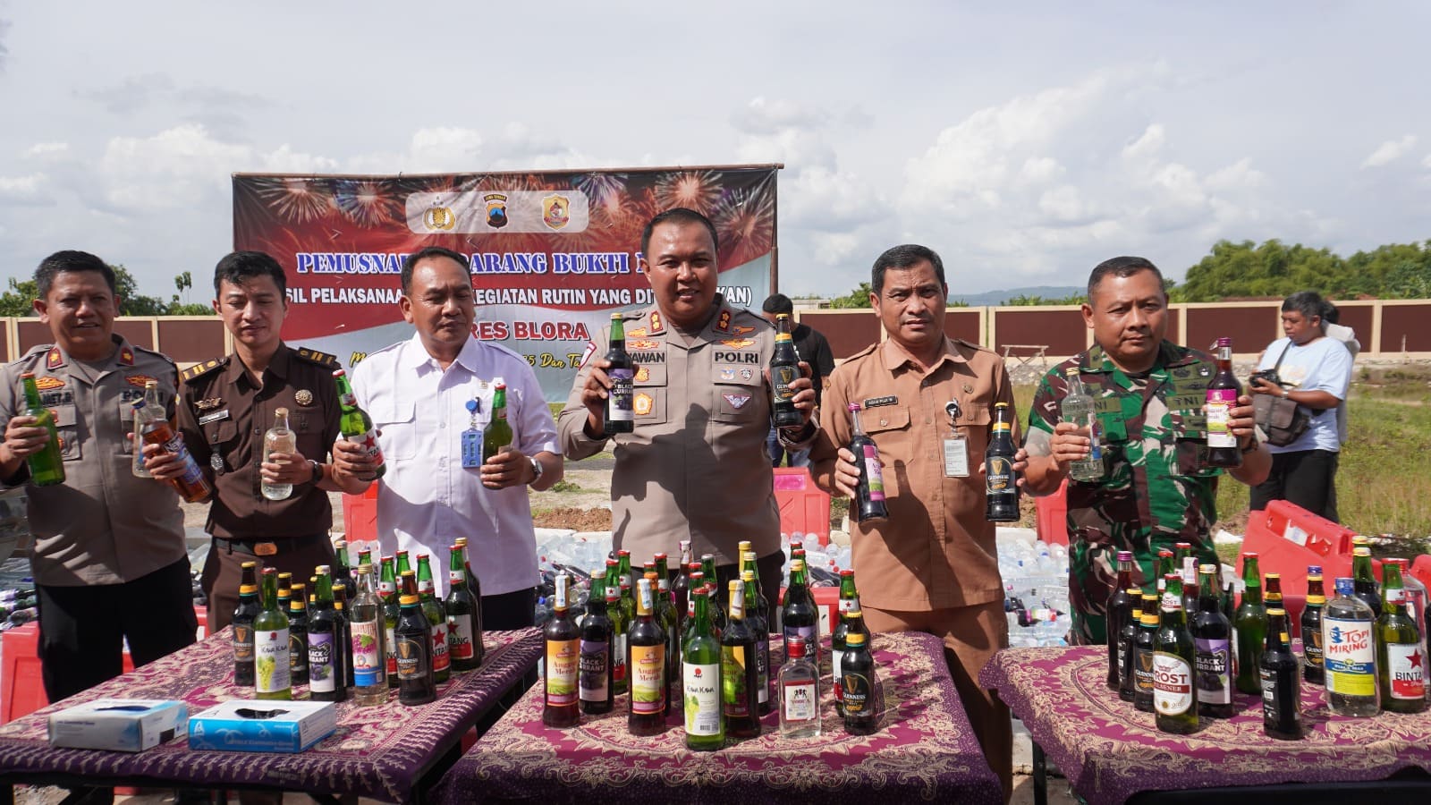 Sebanyak 1.628 botol miras dari berbagai merek dan jenis dimusnahkan dengan cara digilas menggunakan alat berat. Pemusnahan ini dilakukan sebagai bagian dari upaya pengamanan Natal 2025 dan Tahun Baru 2026, serta disaksikan langsung oleh jajaran Forkopimda Kabupaten Blora, tokoh masyarakat, dan perwakilan instansi terkait.