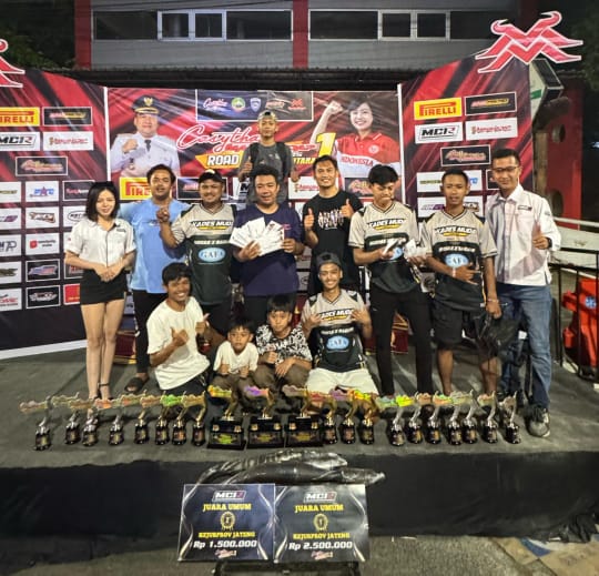 Klikjateng, Blora – Sosok Yananta Laga Kusuma, Kepala Desa Bangsri, Kecamatan Jepon, Kabupaten Blora, menarik perhatian publik usai tampil memukau dalam ajang balap motor yang digelar di sirkuit Non Permanen (NP) Alun-alun Blora. Pada hari Sabtu (12/4) dan Minggu (13/4/25). Dalam ajang bergengsi tersebut, tim yang dipimpinnya sukses memborong hingga 20 piala, dengan sebagian besar merupakan podium juara pertama.