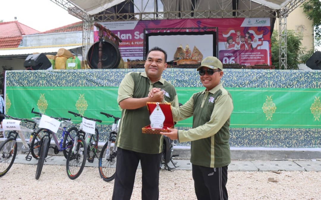 Bupati Blora, Dr. H. Arief Rohman, yang hadir dan memberangkatkan peserta jalan sehat, memberikan apresiasi atas sinergi Kankemenag dengan Pemkab Blora dalam menjaga kerukunan umat beragama.