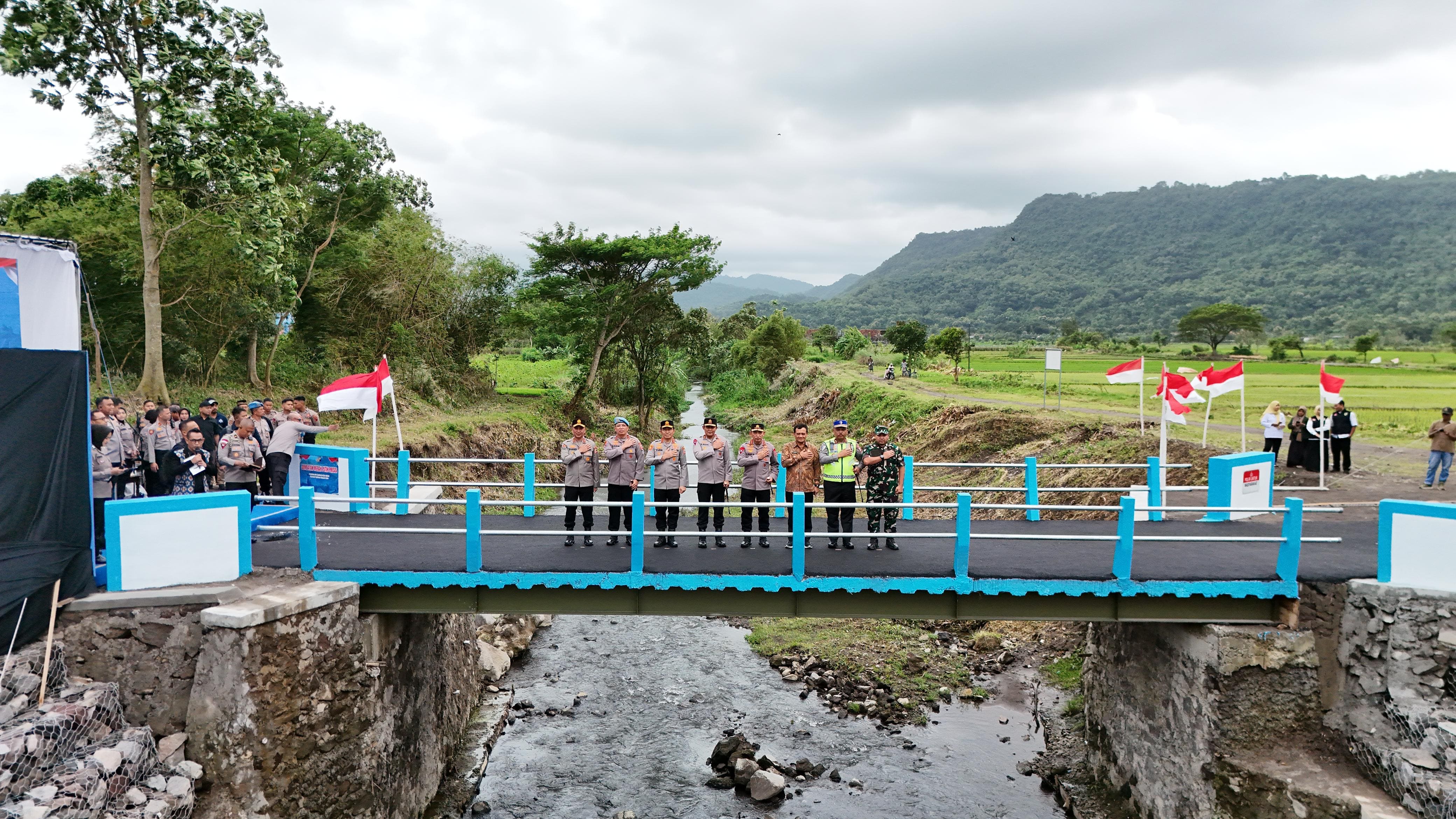 “Peresmian jembatan ini tidak hanya menghubungkan secara fisik warga dua desa, tetapi juga menghubungkan ikatan batin antara Polri dengan masyarakat,” ujar Irjen Pol Ribut Hari Wibowo dalam laporannya kepada Kapolri.
