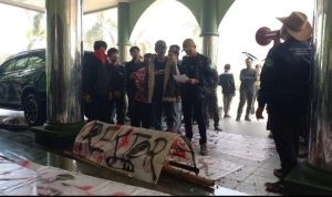 Para mahasiswa yang berunjuk rasa pada Kamis (1/8/2024) mengenakan pakaian serba hitam dan membawa spanduk bertuliskan kecaman terhadap kebijakan rektor kampus. Selain itu, mereka mengusung replika keranda mayat bertuliskan ‘Rektor’ yang ditandu dari depan pintu rektorat menuju ruang tamu gedung rektorat. Situasi sempat mencekam ketika mahasiswa membakar ban di depan gedung rektorat.