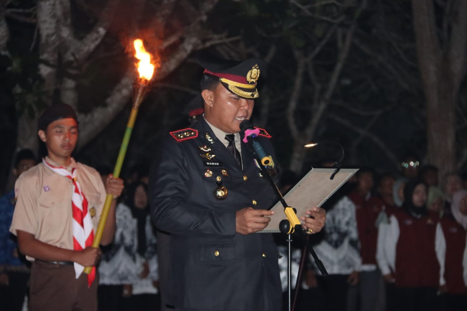 Apel Kehormatan dan Renungan Suci yang rutin digelar setiap tahun ini diikuti oleh unsur TNI, Polri, Satpol PP, Linmas, Korpri, pelajar, pendamping PKH, hingga Pramuka yang bertugas menyalakan obor dan lilin.