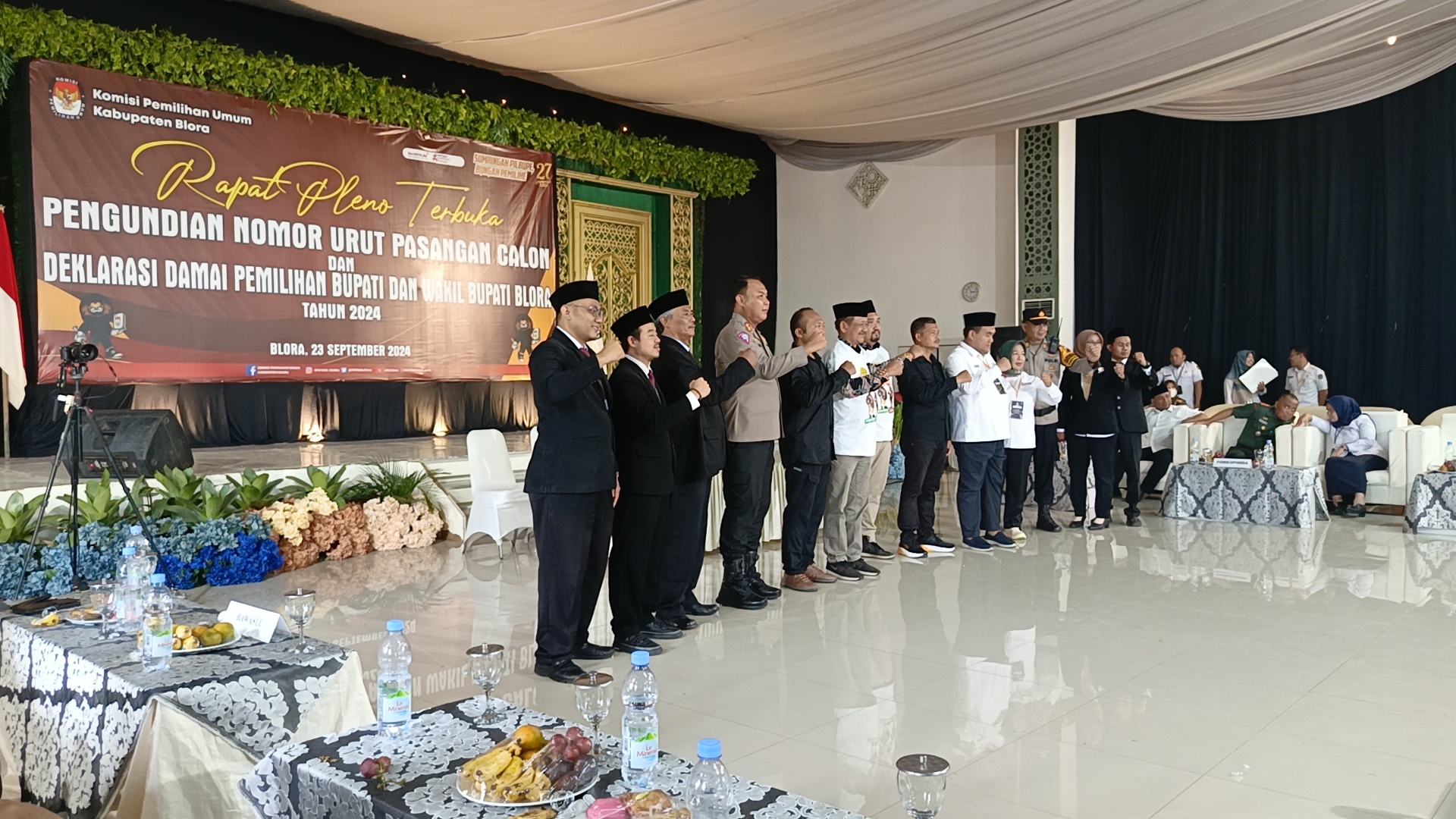 Acara pengundian nomor urut ini berlangsung dengan pengamanan ketat dari personel kepolisian, dan dihadiri oleh sejumlah pejabat penting daerah, termasuk jajaran Forum Koordinasi Pimpinan Daerah (Forkopimda) Kabupaten Blora serta komisioner Badan Pengawas Pemilu (Bawaslu) Blora. Selain itu, partai-partai pengusung dari kedua pasangan calon juga turut hadir mendampingi.