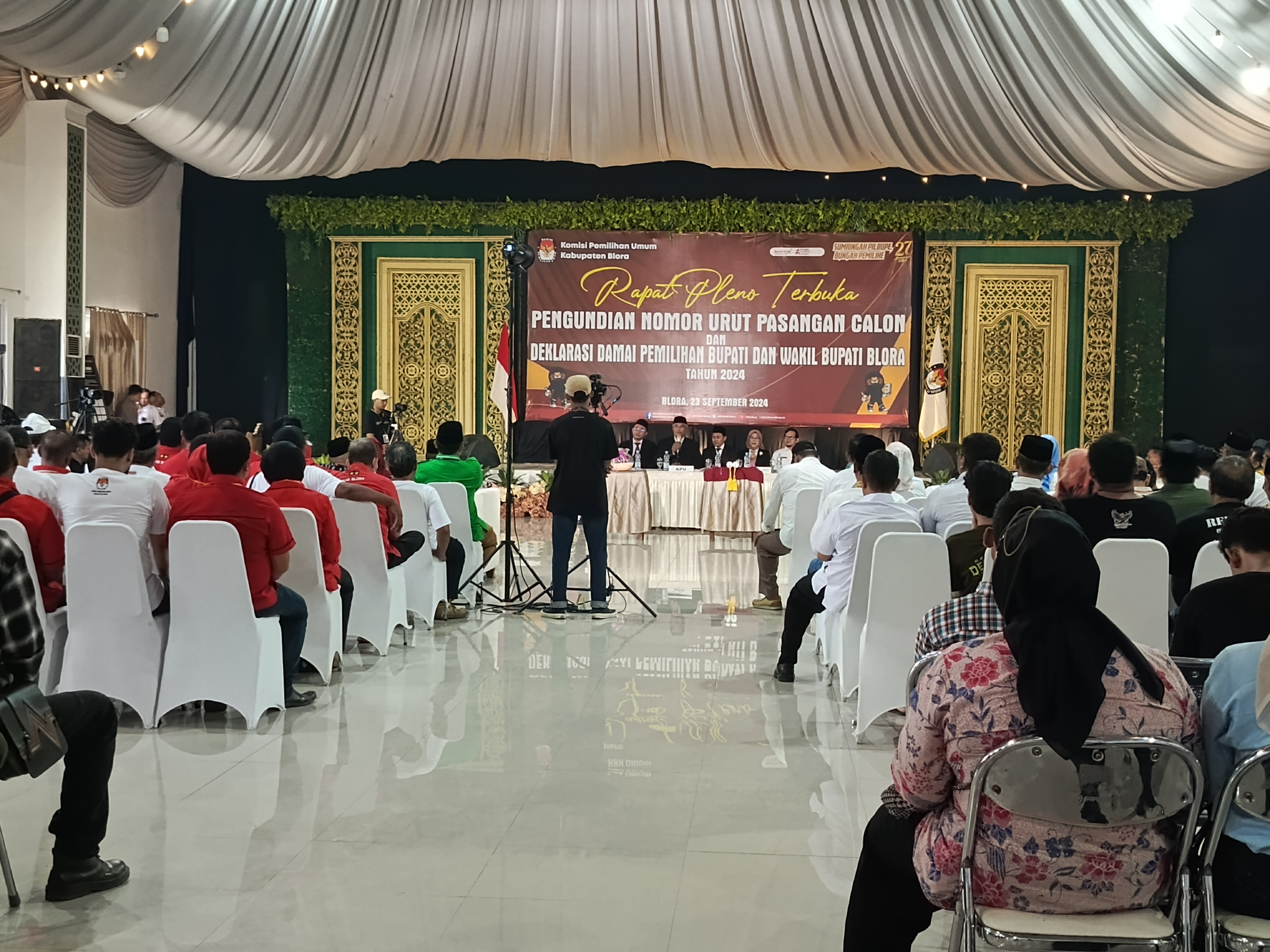 Acara pengundian nomor urut ini berlangsung dengan pengamanan ketat dari personel kepolisian, dan dihadiri oleh sejumlah pejabat penting daerah, termasuk jajaran Forum Koordinasi Pimpinan Daerah (Forkopimda) Kabupaten Blora serta komisioner Badan Pengawas Pemilu (Bawaslu) Blora. Selain itu, partai-partai pengusung dari kedua pasangan calon juga turut hadir mendampingi.