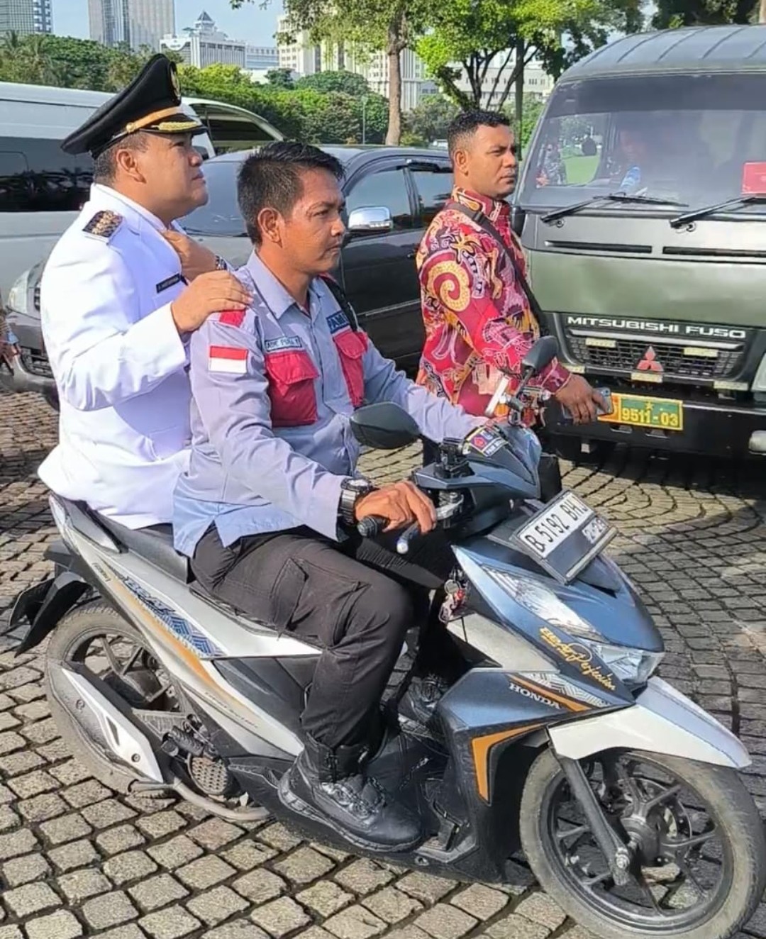 Klikjateng, Jakarta – Bupati Blora terpilih, Dr. H. Arief Rohman, punya cara unik menuju lokasi pelantikan kepala daerah di Istana Negara, Jakarta, Jumat (21/2/2025). Karena padatnya antrean kendaraan di sekitar Monas, Arief memilih menumpang sepeda motor milik petugas keamanan agar lebih cepat sampai di lokasi screening sebelum pelantikan.
