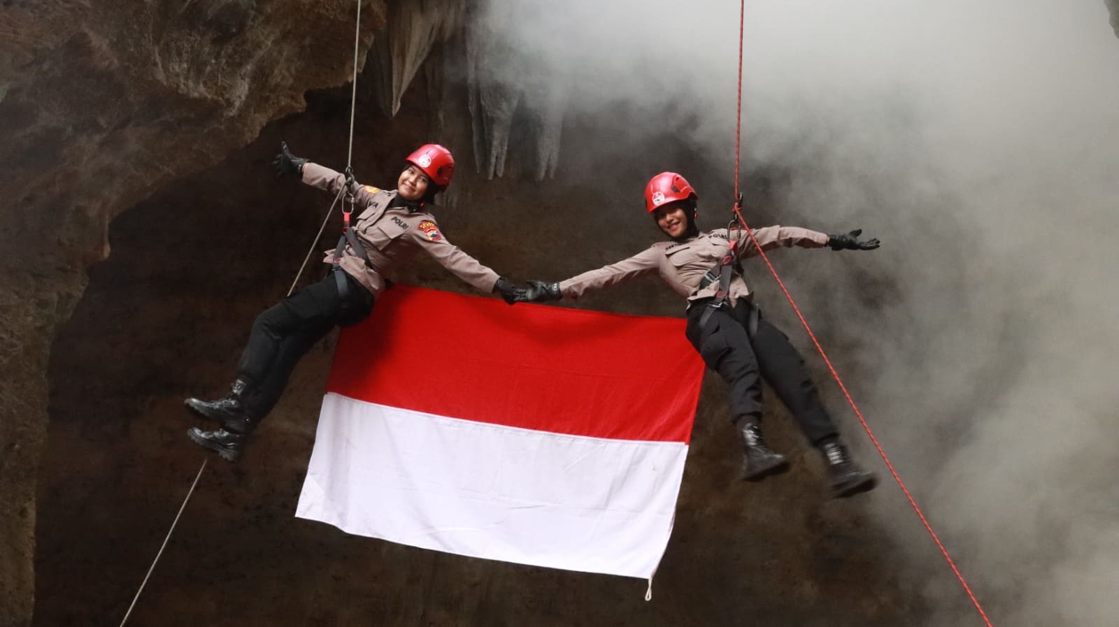 Menurutnya, aksi tersebut sengaja dipilih untuk sekaligus memperkenalkan destinasi wisata Gua Terawang kepada masyarakat luas. “Kami kerahkan para anggota ke sini. Termasuk ibu-ibu Bhayangkari juga ikut andil dalam prosesi pengibaran bendera,” tandasnya.