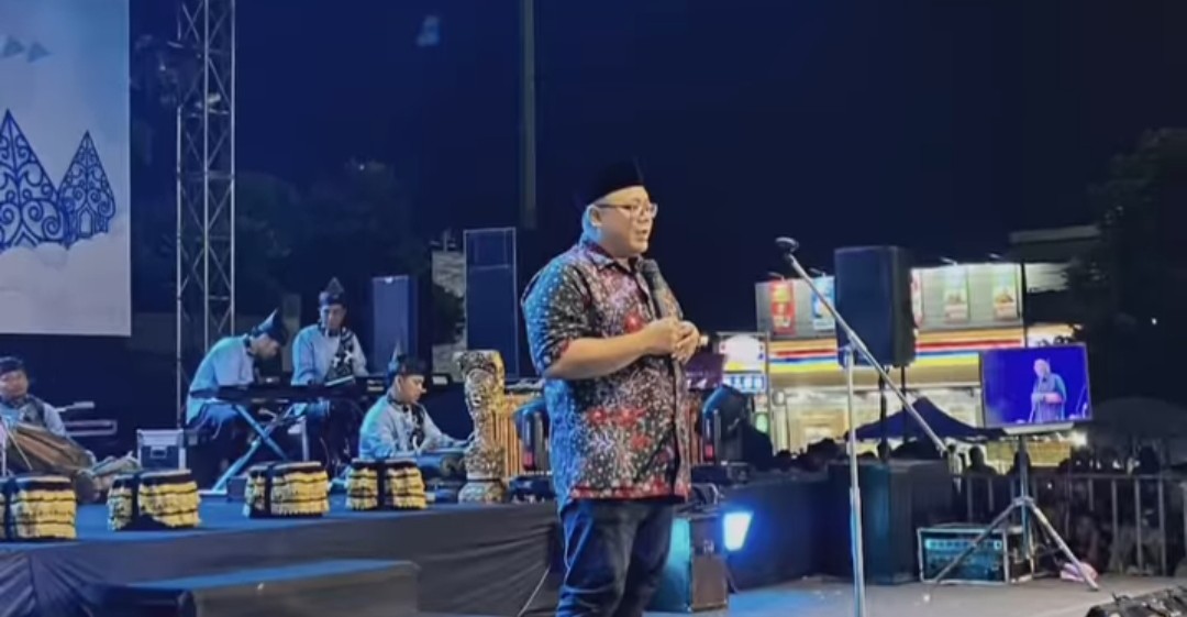 Klikjateng, Rembang – Ribuan warga memadati Alun-Alun Rembang pada Ahad malam (6/4/2025) untuk menyaksikan pertunjukan komedi khas Guyon Waton dari Cak Percil Cs. Acara ini merupakan bagian dari rangkaian kegiatan halal bihalal antara masyarakat dan Pemerintah Kabupaten (Pemkab) Rembang dengan tajuk “Sinergi Bersama Rakyat: Kebijakan Perekonomian Menuju Rembang Sejahtera.”