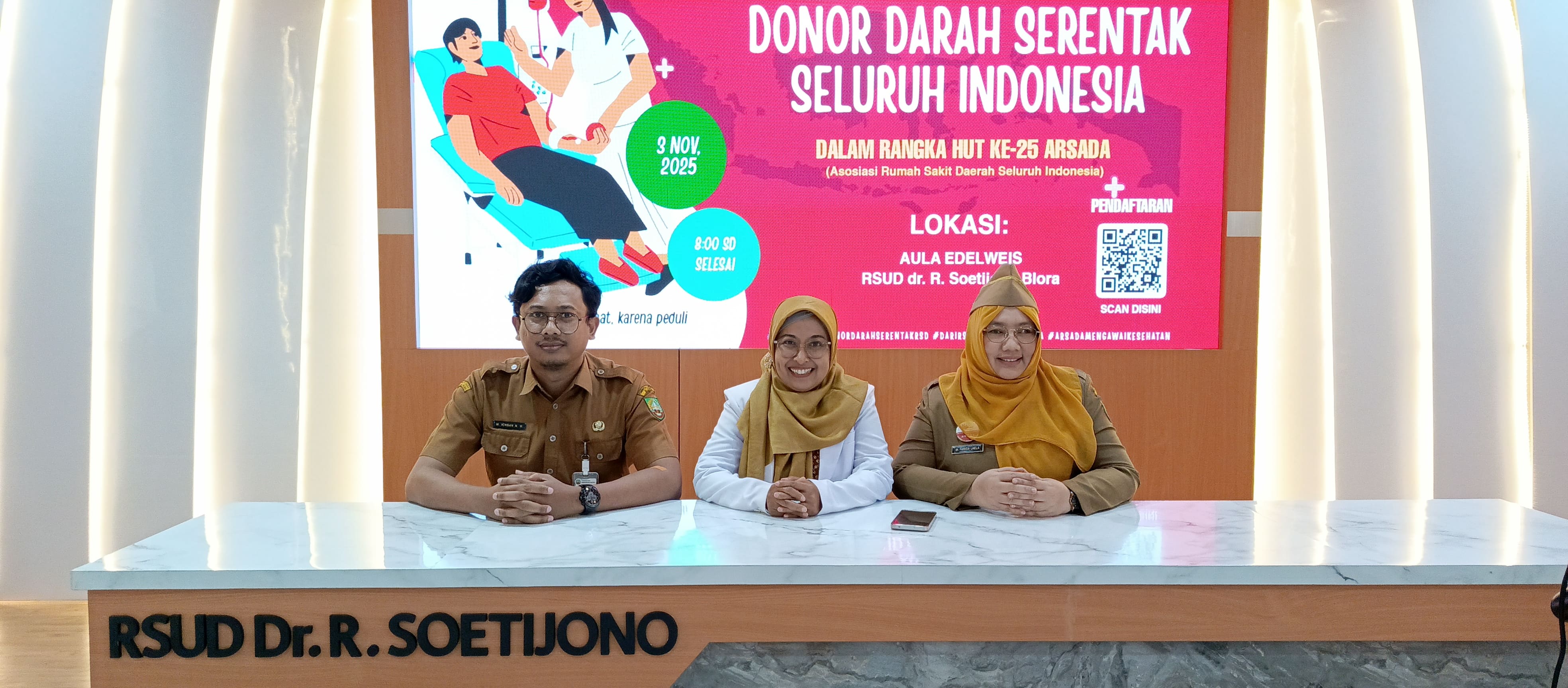 Kepala Bidang Pelayanan RSUD dr. R. Soetijono Blora, dr. Farida Laela, menjelaskan bahwa kegiatan tersebut merupakan bentuk kepedulian rumah sakit dalam mendukung ketersediaan stok darah, khususnya di Kabupaten Blora.