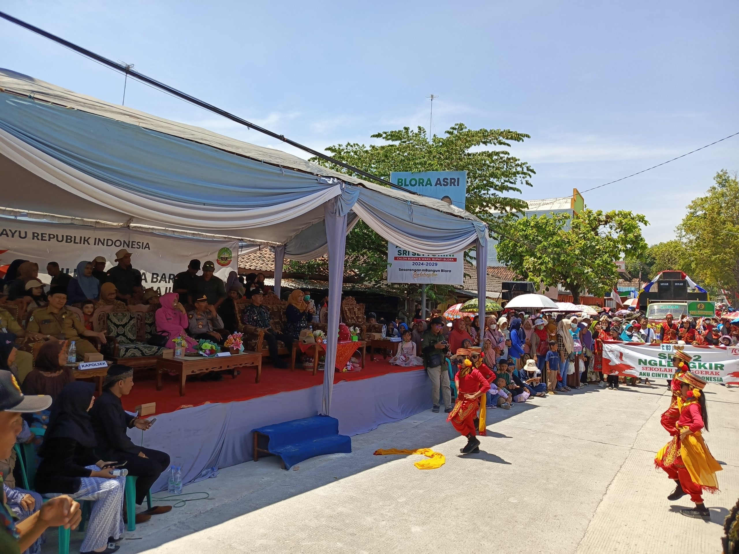 Klikjateng, Blora – Karnaval dalam rangka memperingati Hari Ulang Tahun (HUT) ke-79 di Kecamatan Bogorejo. Selasa (27/08/24). Acara tersebut berlangsung meriah dengan partisipasi masyarakat yang luar biasa. Camat Bogorejo, Ruswanto, mengungkapkan rasa syukurnya atas tingginya tingkat partisipasi dan antusiasme masyarakat yang terlihat dari awal hingga akhir acara.
