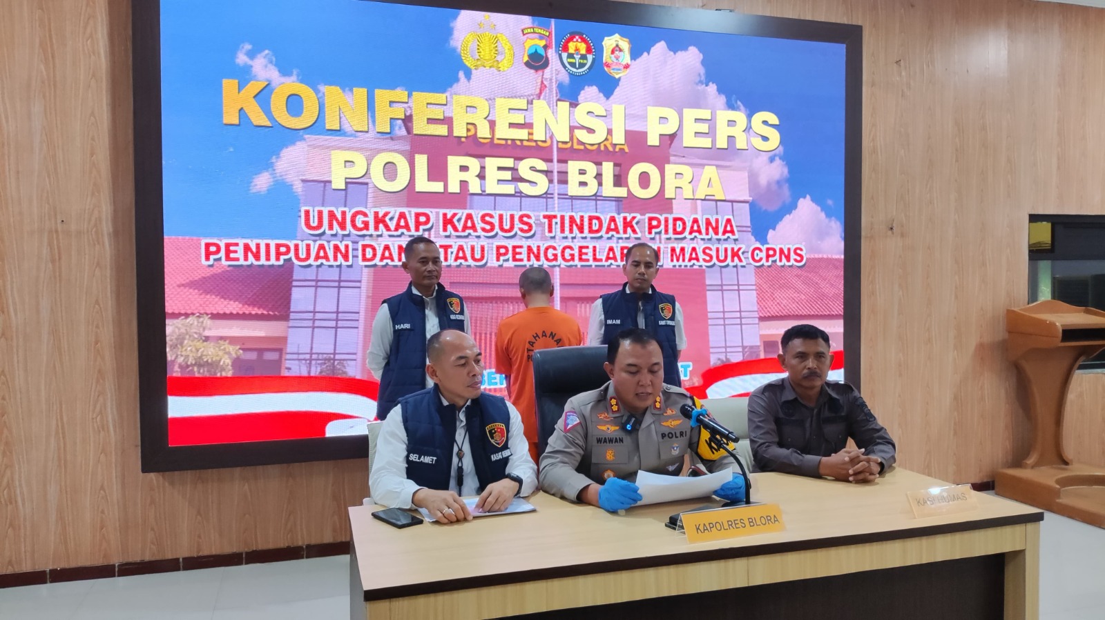 Klikjateng, Blora – Seorang warga Kecamatan Banjarejo, Kabupaten Blora, berinisial DS (40), ditangkap oleh Satuan Reserse Kriminal (Satreskrim) Polres Blora, Polda Jawa Tengah. DS diduga melakukan tindak pidana penipuan dan penggelapan dengan modus menjanjikan pekerjaan di Dinas Sosial (Dinsos) dan Dinas Perdagangan Koperasi (Dindakop) Blora.